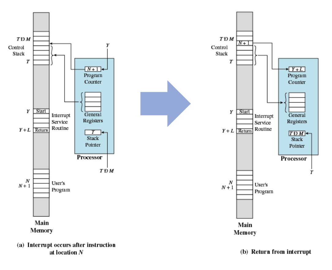 Y(Interrupt Handler의 시작 주소)저장 Y~Y + L(Intterupt Service Routine) 수행- Control Stack의 상태 Pop하며 PC와 General Register 상태 복구(Restore)