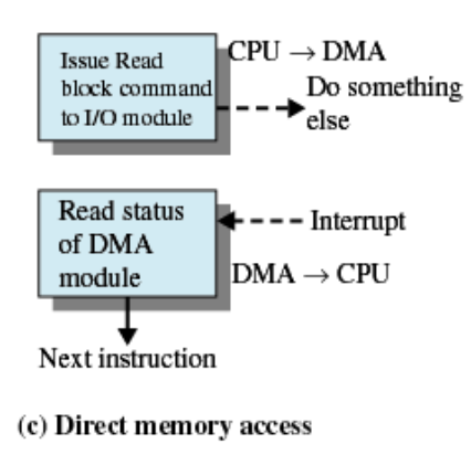 - DMA Controller가 I/O ↔ 메모리 간 직접 데이터 전송 수행